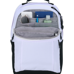 The pack that’s geared-up for all destinations. Travel with ultimate comfort. featuring cushiony-ergonomic shoulder straps. and extra-soft back panel. Organize effortlessly with front gear compartment. stash pocket. padded laptop sleeve. and two H2O pockets. Luggage attachment. and padded top grab handle in case you need to modify how you carry.